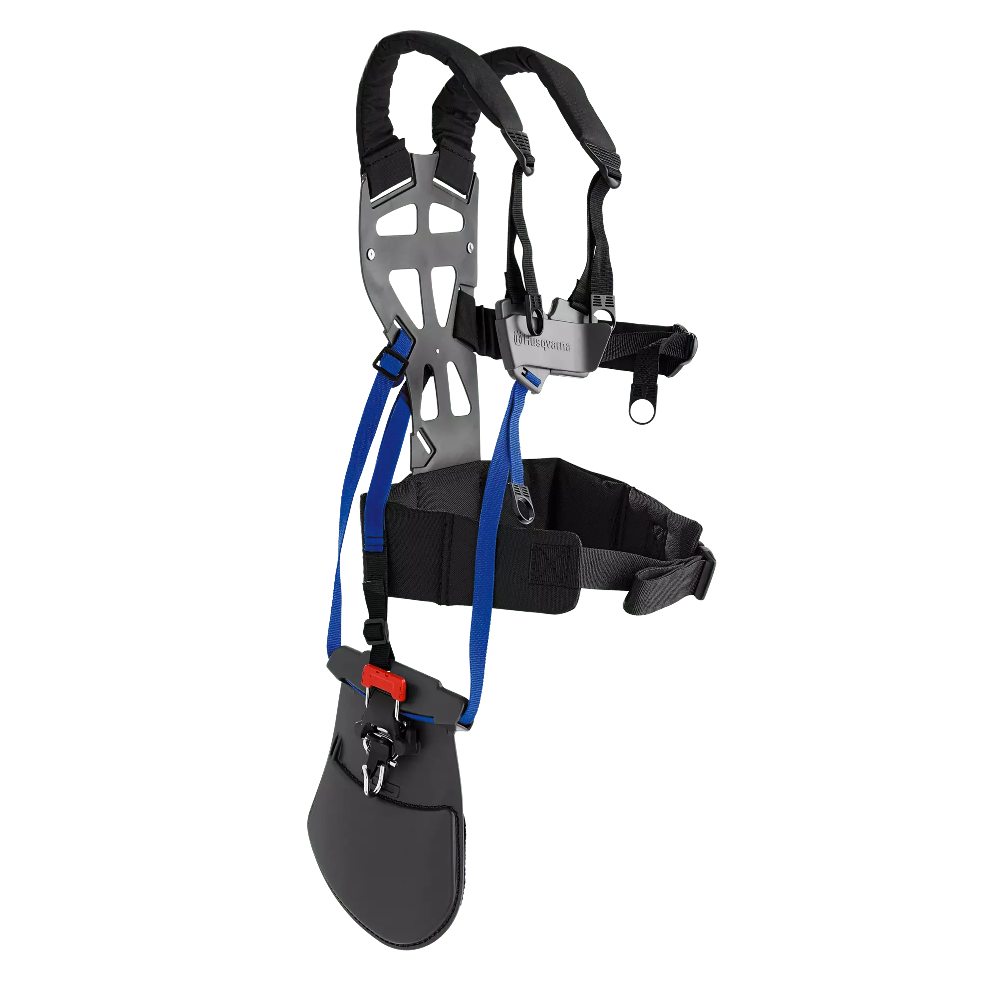 Käytössä miellyttävät Balance X -valjaat jakavat painon tasaisemmin laajemmalle alueelle. Valjaissa on leveä, ilmava selkälevy ja leveät, pehmustetut olkahihnat. Paino jakautuu tasaisesti olkapäille, rinnalle, selälle ja lantiolle, jolloin selkään ja hartioihin kohdentuva rasitus vähenee. Joustavan lonkkatuen voi säätää ruohon- tai metsänraivaussahan mukaan sekä kuljetusasentoon. Valjaat on helppo säätää rintalevyn ja lantiovyön avulla. Pikakiinnitys auttaa irrottamaan koneen valjaista helposti ja turvallisesti.