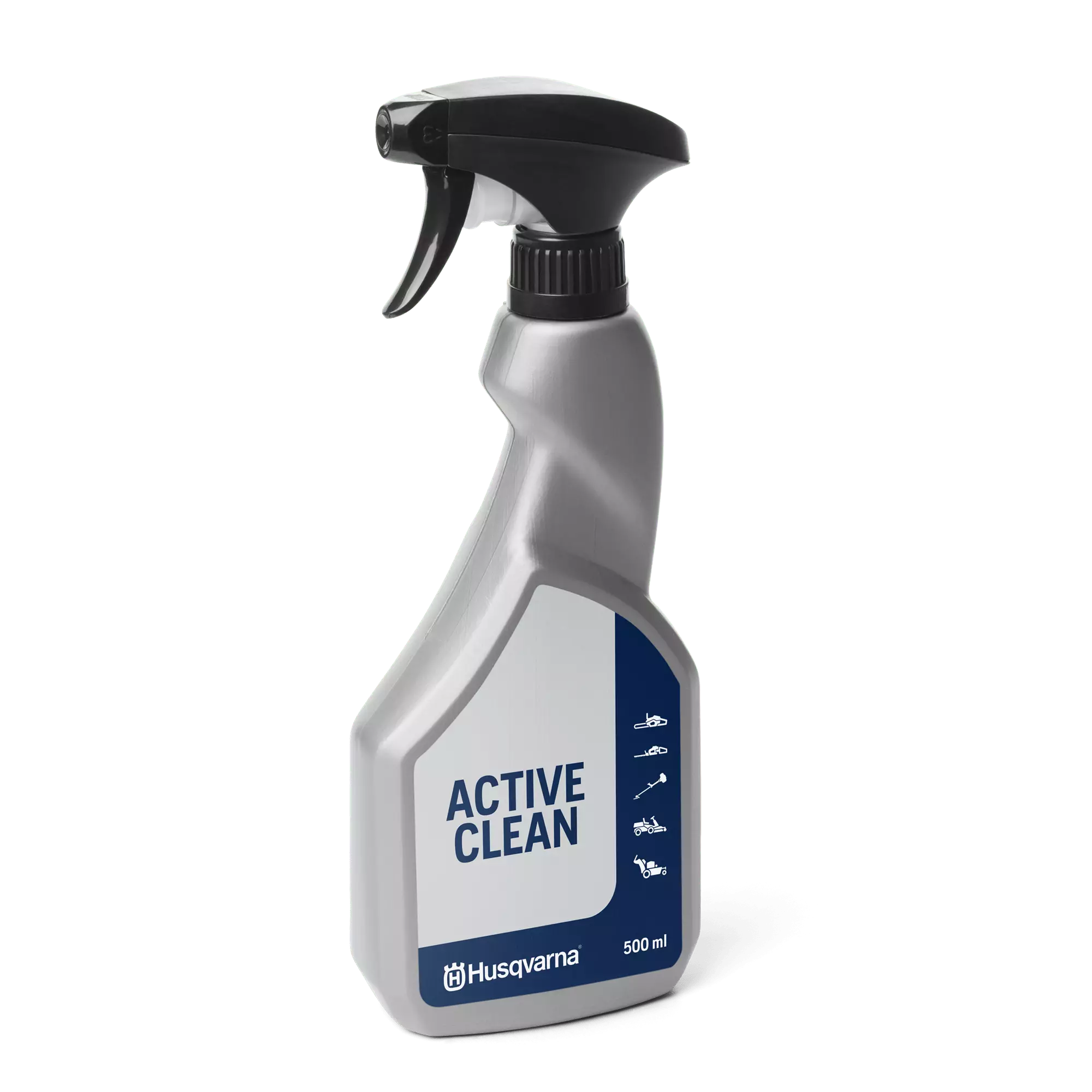 Monikäyttöinen puhdistussuihke sopii erinomaisesti teräketjujen, puutarhakoneiden, ilmansuodattimien ja likaisten jalkineiden puhdistukseen. Ergonomisesti muotoillun pullon ja laadukkaan ruiskuliipaisimen ansiosta suihketta on helppo levittää. Kapea suutin sopii pienten kohteiden kuten moottorisahojen ja pensasleikkureiden puhdistukseen ja leveämpi suihkusuutin suurempien kohteiden kuten leikkuulaitteiden, Riderien ja puutarhatraktorien puhdistukseen. Husqvarna Active Clean Spray -puhdistussuihke sisältää erikoispesuainetta, joka on fosfaatitonta ja biologisesti hajoavaa.