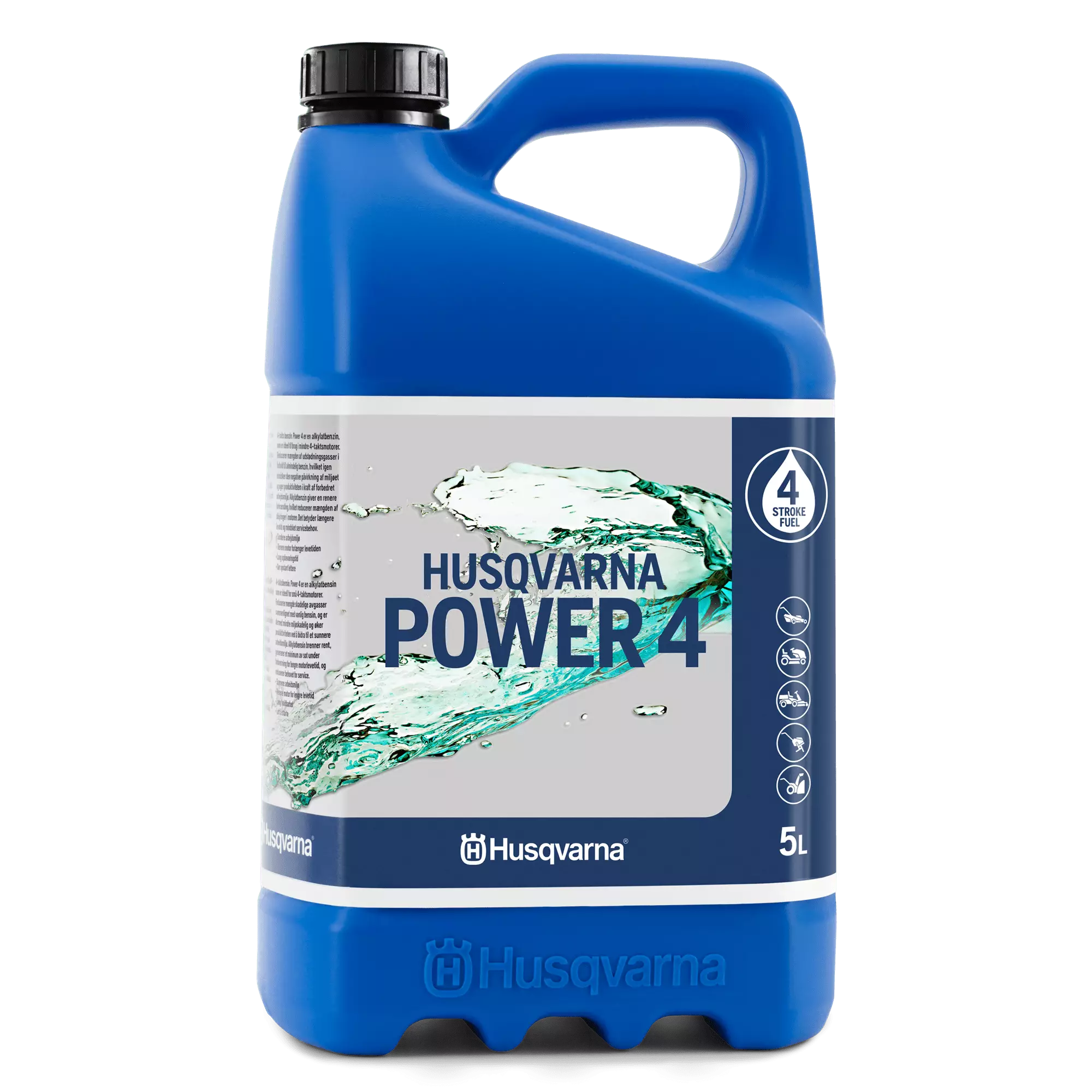 Husqvarna Power 4 alkylaattipolttoaine Husqvarnalta. Suositeltu käytettäväksi kaikissa 4-tahtisissa pienmoottoreissa. Husqvarna Power 4 synnyttää palaessaan vähemmän haitallisia pakokaasupäästöjä verrattuna normaaleihin polttoaineisiin, ja tekee siten työskentely-ympäristöstä terveellisemmän. Se myös säilyttää palo-ominaisuudet pidempään, mikä edesauttaa moottorin käynnistämistä.