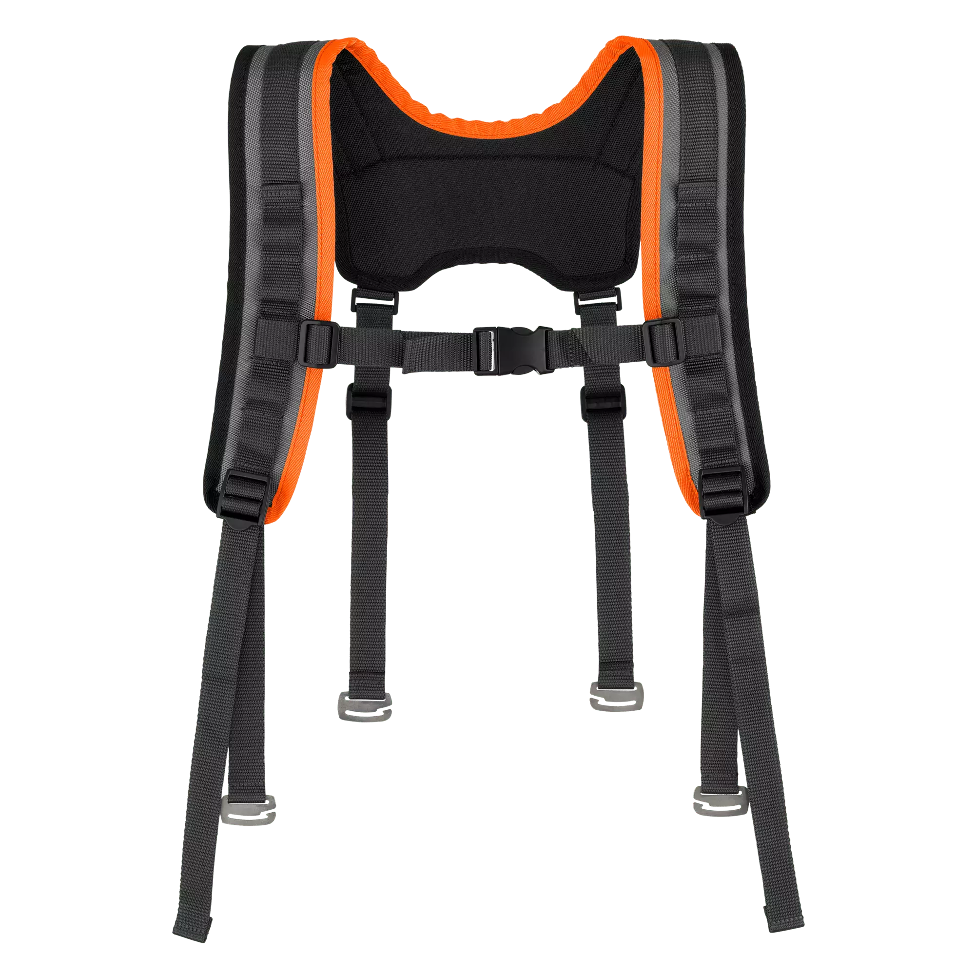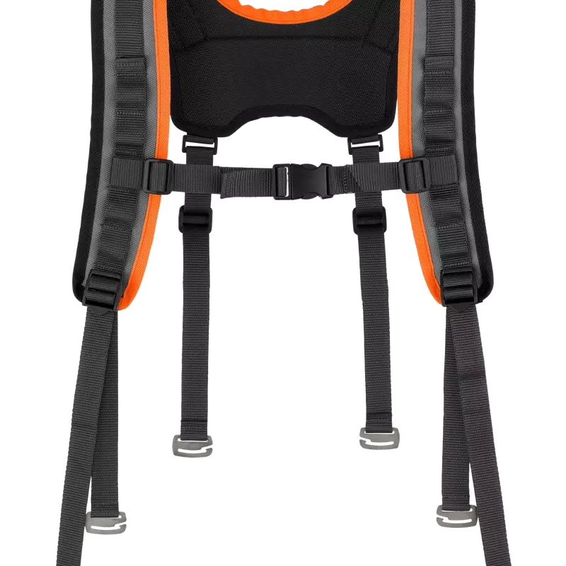 Thanks to the padded shoulder straps, the harness evens the load distribution over the shoulders.