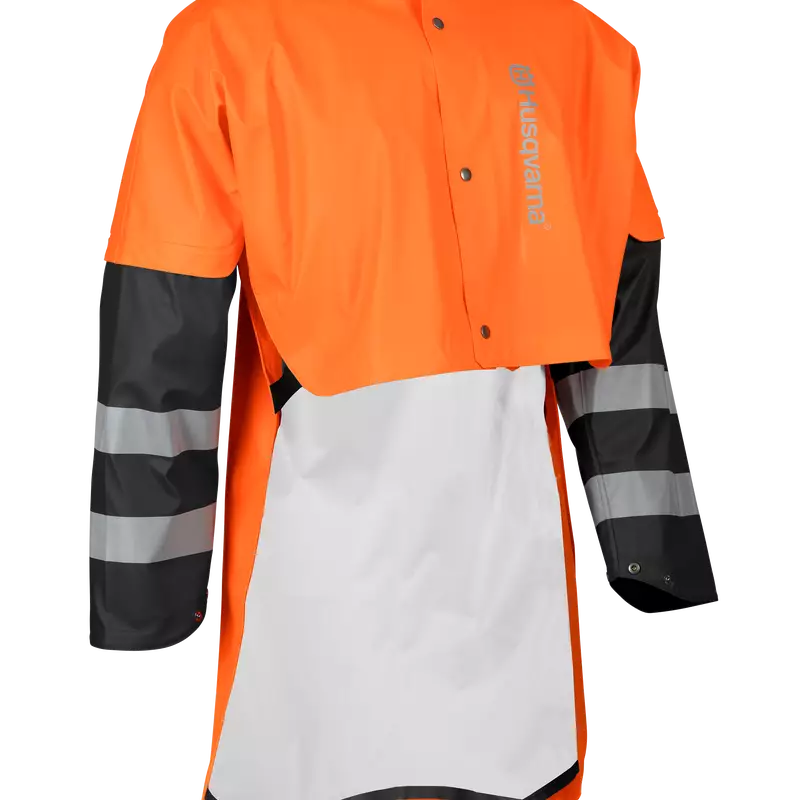 Polyesterineuloksesta valmistettu selän sadesuoja, jossa on kestävä yksipuolinen PU-pinnoite ja hitsatut saumat. Kangas on vahvaa, mutta kuitenkin kevyttä ja kahisematonta. Selkäsuoja on suunniteltu moottorisahan käytön aikaisiin työasentoihin. Selkäsuojassa on erittäin pitkä sadereunalla varustettu selkäkappale, joka ohjaa sadeveden sivulle kumarassa työasennossa. Leveyttä voi säätää tarpeen mukaan edessä olevalla nepparikiinnityksellä. Hyväksytty standardin EN343 mukaisesti. Yksi koko.