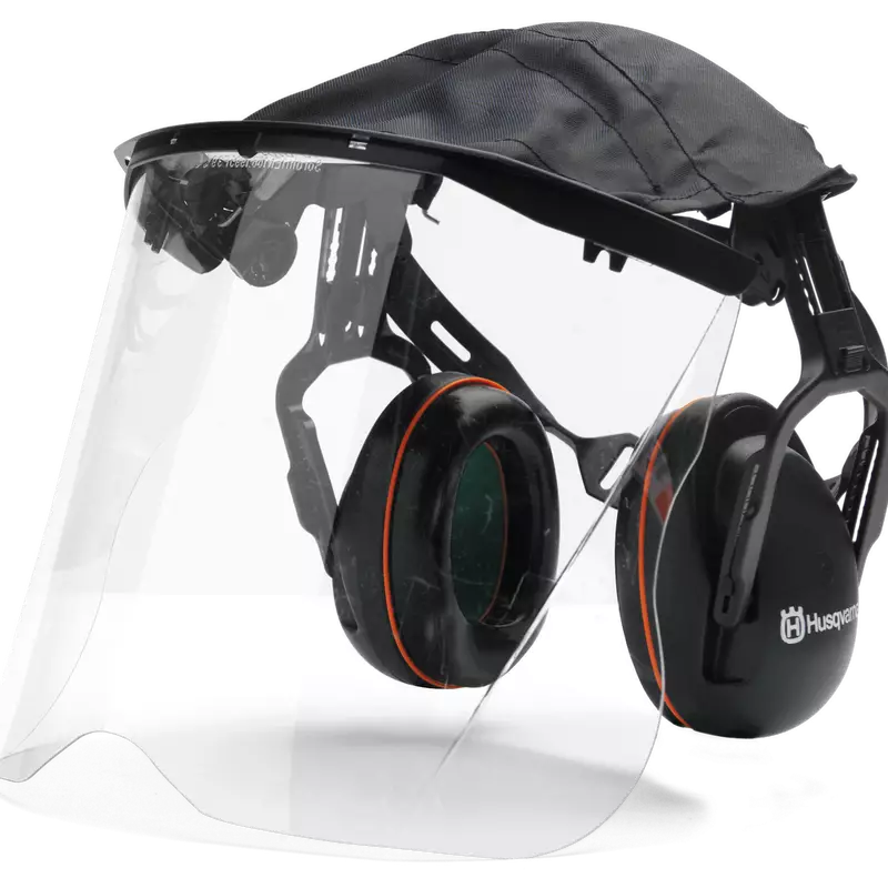 Suojaa esim. raivaustyössä. Päälakisuoja visiirin ja sankakuulonsuojainten välissä suojaa ruoholta, roskilta ja sateelta. Toimitetaan täydellisenä, kuvan mukaisena yhdistelmänä. Kypärään sopivan pleksivisiirin voi ostaa myös erikseen, ja siinä oleviin kannattimiin voi kiinnittää aurinkolipan. Lisävarusteena niskasuoja.