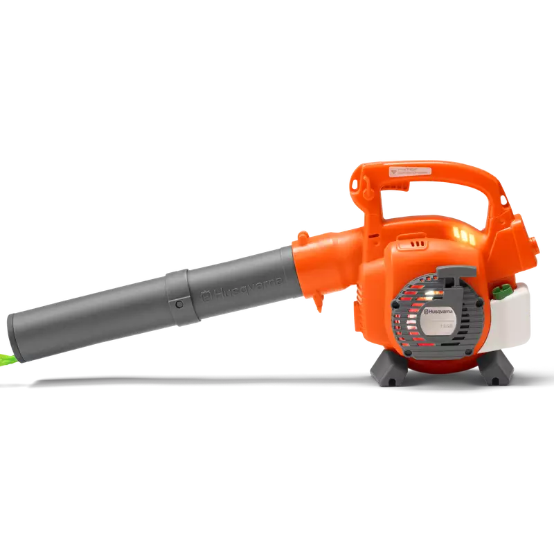 Muistuttaa oikeaa Husqvarna 125B -puhallinta. Leikkipuhallin soveltuu 3 vuotta täyttäneille lapsille, ja se kuulostaa ja toimii kuten oikea puhallin.
