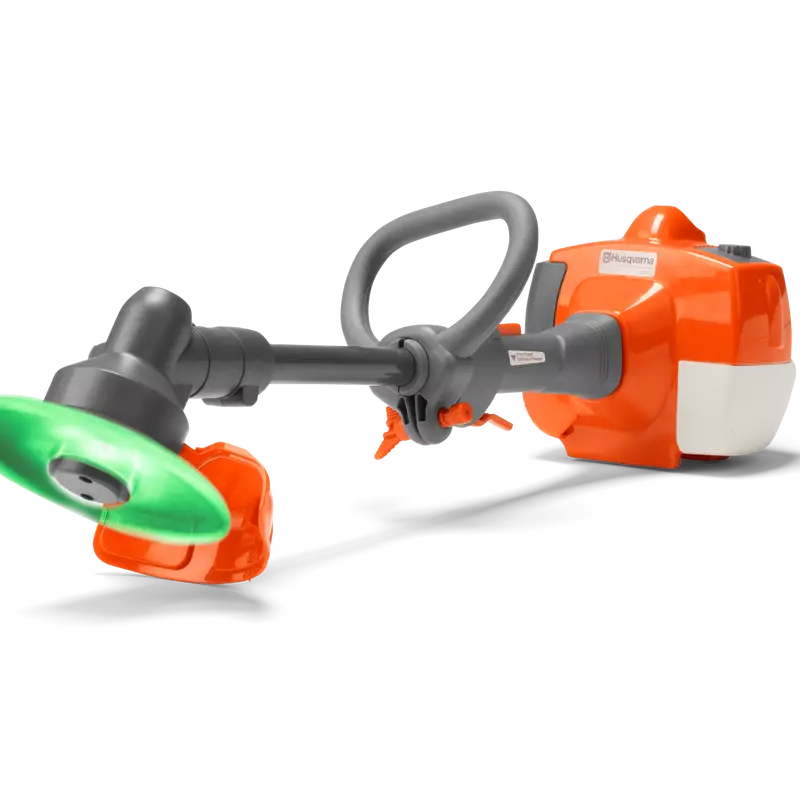 Muistuttaa aitoa Husqvarna-trimmeriä. Soveltuu 3 vuotta täyttäneille lapsille. Todenmukainen ääni, leikkuupäässä on vihreä valo ja terä pyörii painiketta painettaessa.
