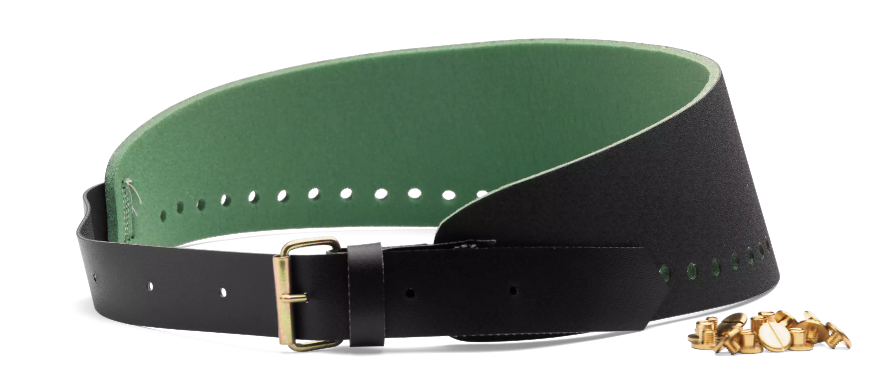 Erikoisleveä vyö tukee hyvin selkää. Voidaan varustaa monilla työkaluilla ja tarvikkeilla.