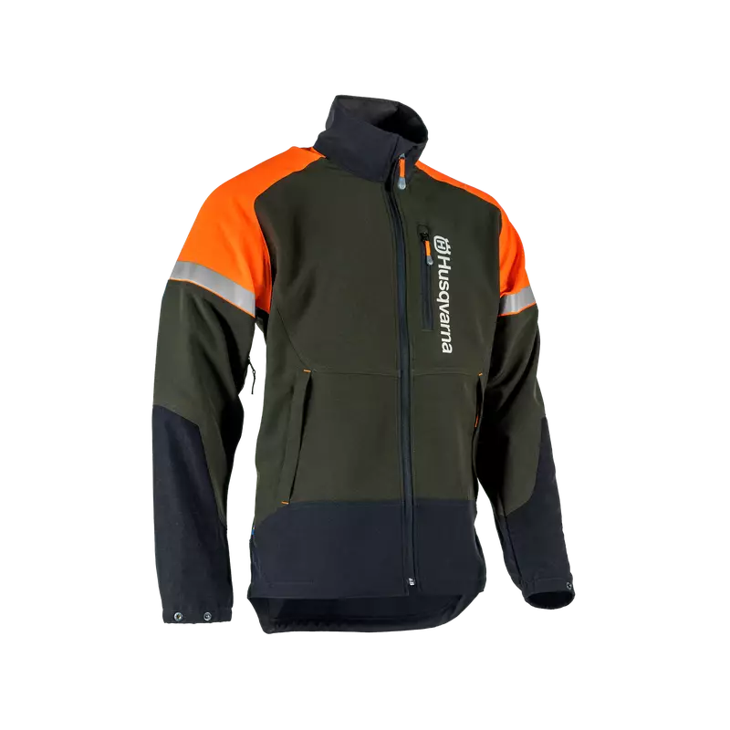 Husqvarna Functional -metsätyötakki on mukava ja kestävä metsätöihin tarkoitettu takki. Ulkoiluun sopivan ulkoasun ja käytännöllisten sivutaskujen ansiosta se sopii ihanteellisesti monipuoliseen käyttöön. Useat vyötärön ja ranteiden säätöominaisuudet sekä vetoketjulliset tuuletusaukot takaavat optimaalisen istuvuuden ja lämpötilan hallinnan. Takki on valmistettu vähintään 70-prosenttisesti kierrätysmateriaaleista, ja siinä on Cordura-vahvikkeet riskialttiilla alueilla. Saatavilla koot XS–XXL.
