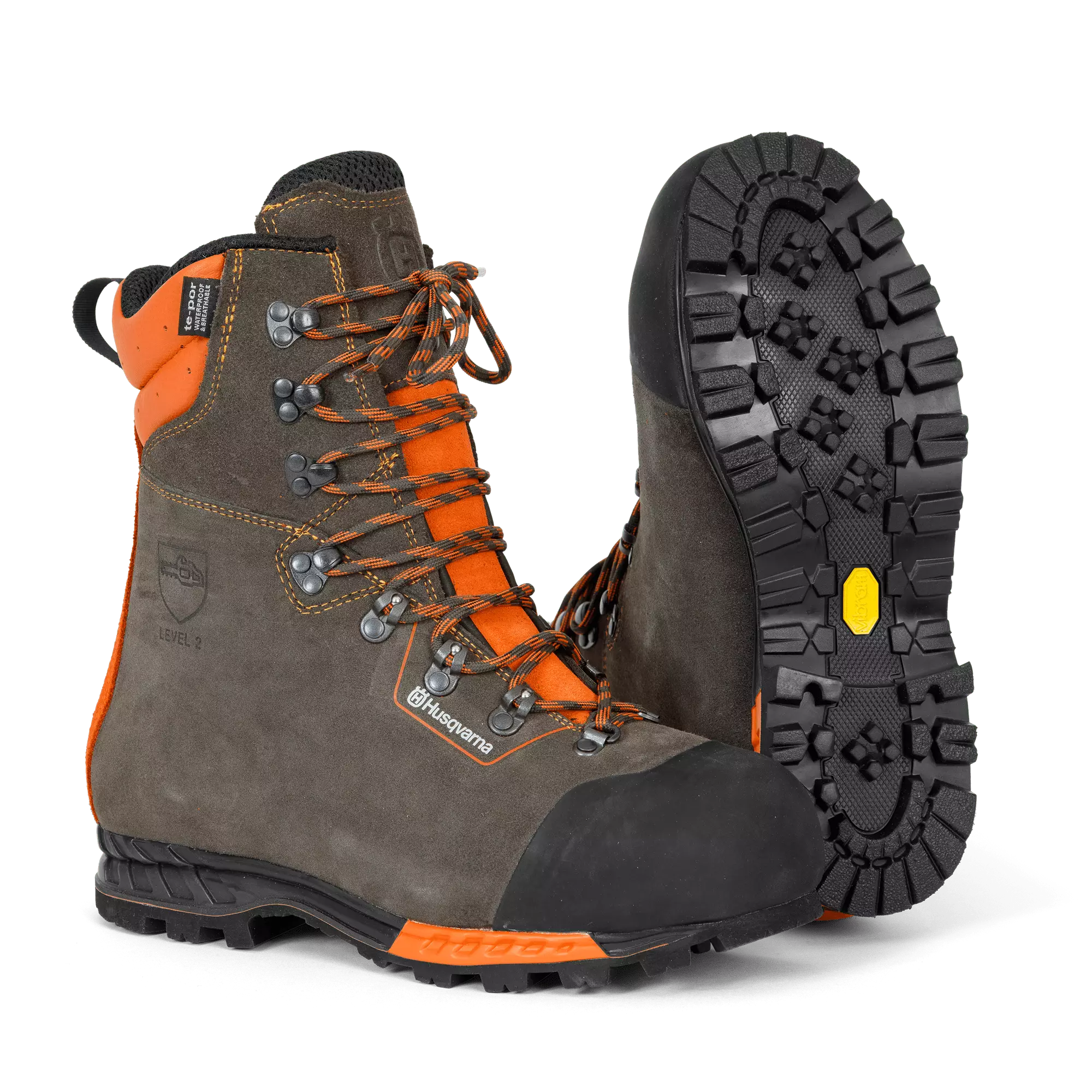 Vettä hylkivien ja keveiden nahkasaappaiden vakaus on erinomainen, ja ne sopivat kovaan käyttöön. Etu- ja takaosan vahvistukset tukevat jalkaa, ja pehmustettu etukieleke ja yläosa takaavat mukavuuden. Kestävä Perwanger®-nahka ja TE-POR-kalvo pitävät jalat kuivina. Vibram®-pohjissa on hyvä pito myös kylmissä, märissä ja liukkaissa oloissa. Koukkukiinnikkeet helpottavat nauhojen kireyden säätöä ja varvassuojukset parantavat turvallisuutta. Täyttää standardin EN ISO 17249:2013 tason luokan 2 (24 m/s) vaatimukset. Koot 38–47.