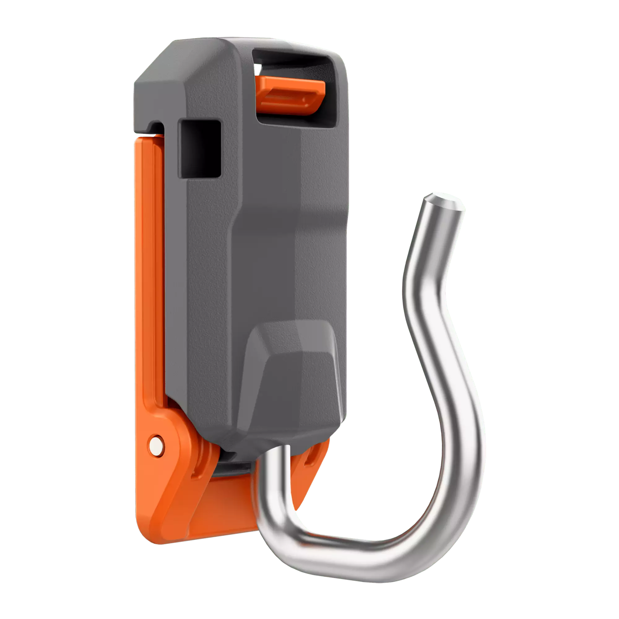 Monikäyttöinen koukku erilaisten työkalujen, vesikanisterien ja muiden välineiden kantamiseen.