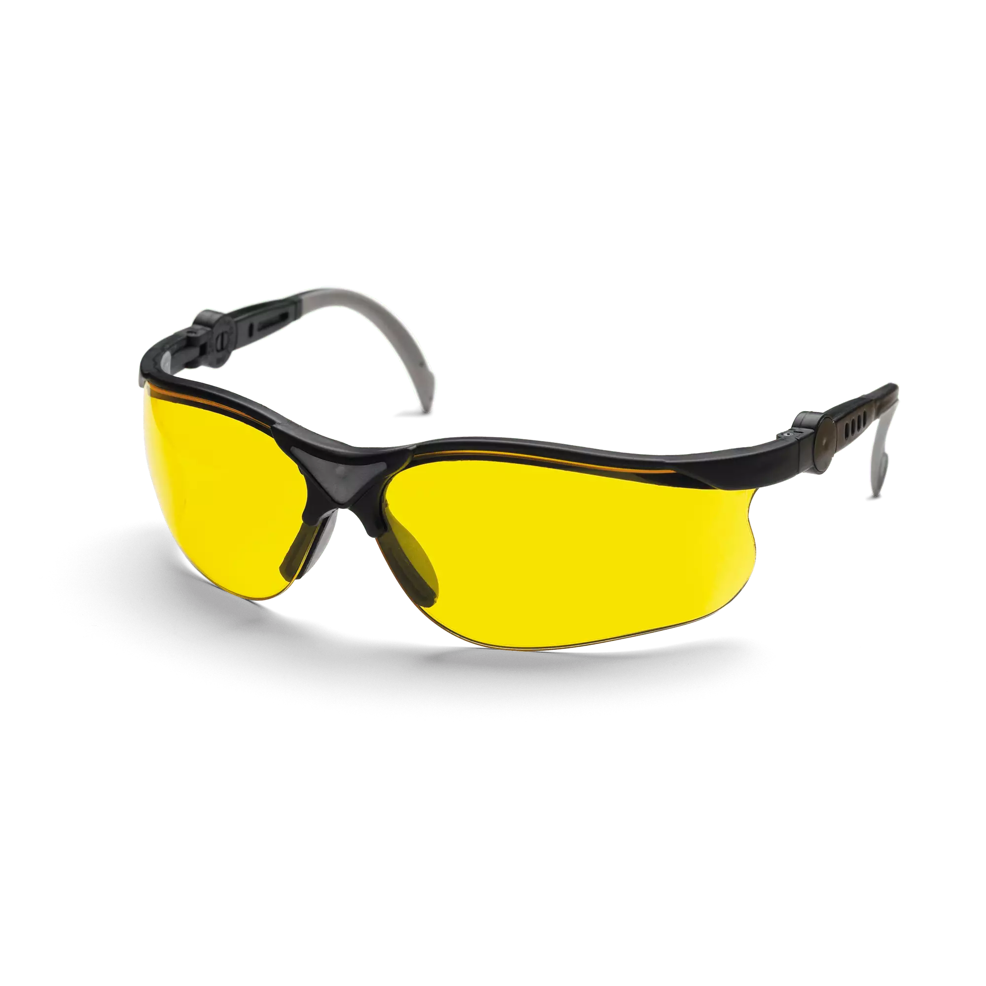 Suojalaseissa on naarmuuntumattomat, keltaiset linssit, jotka soveltuvat hyvin työhön, jossa valaistus on huono. Sankojen pituutta voi säätää ja linssit voi kääntää.