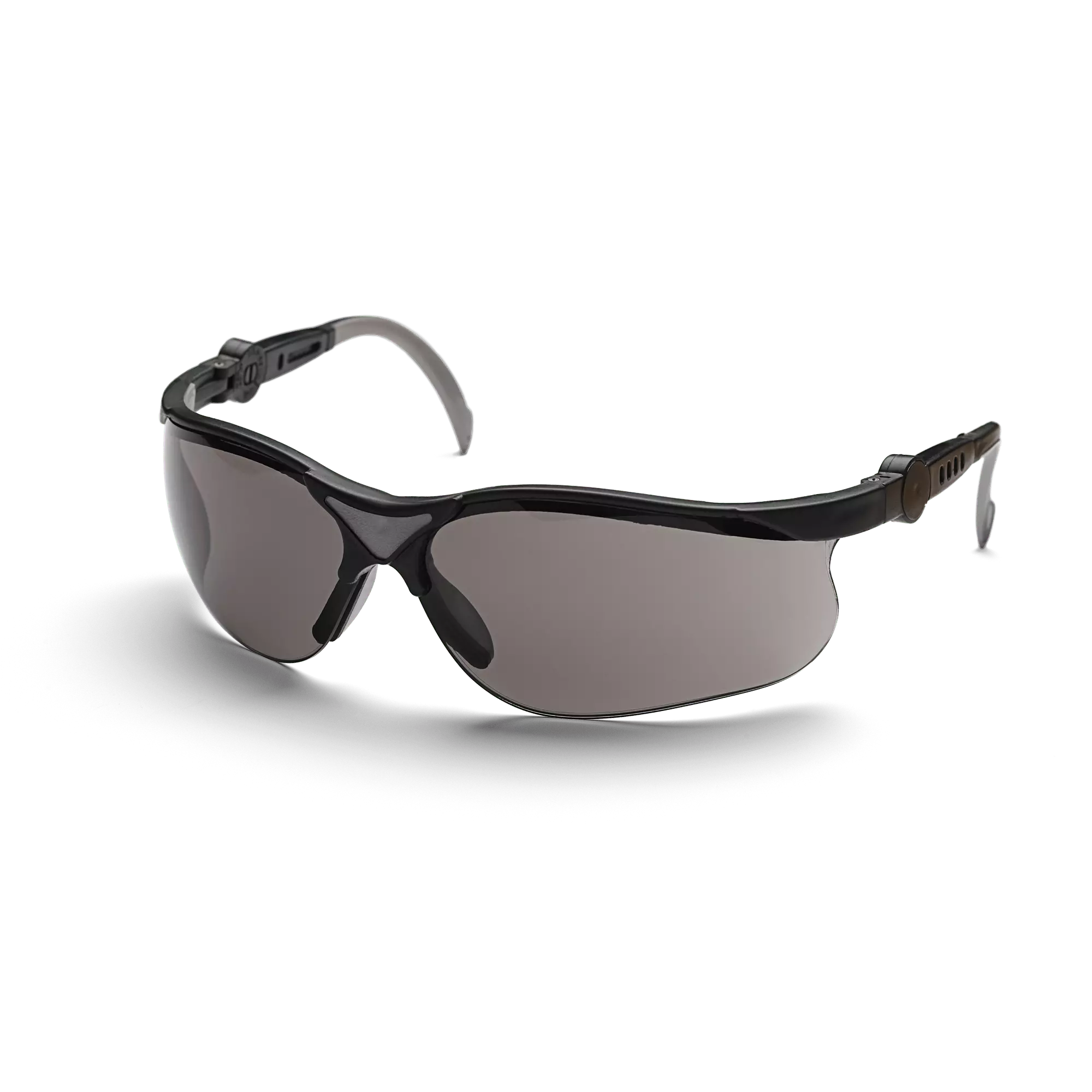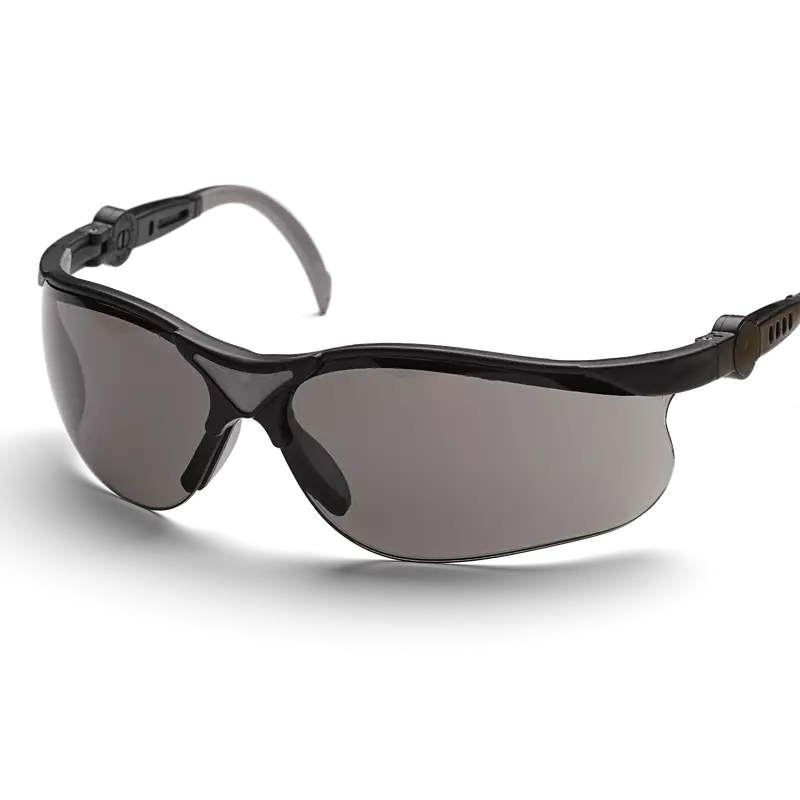 Suojalaseissa on naarmuuntumattomat, harmaasävyiset linssit, jotka soveltuvat hyvin aurinkoisiin olosuhteisiin. Sankojen pituutta voi säätää ja linssit voi kääntää.