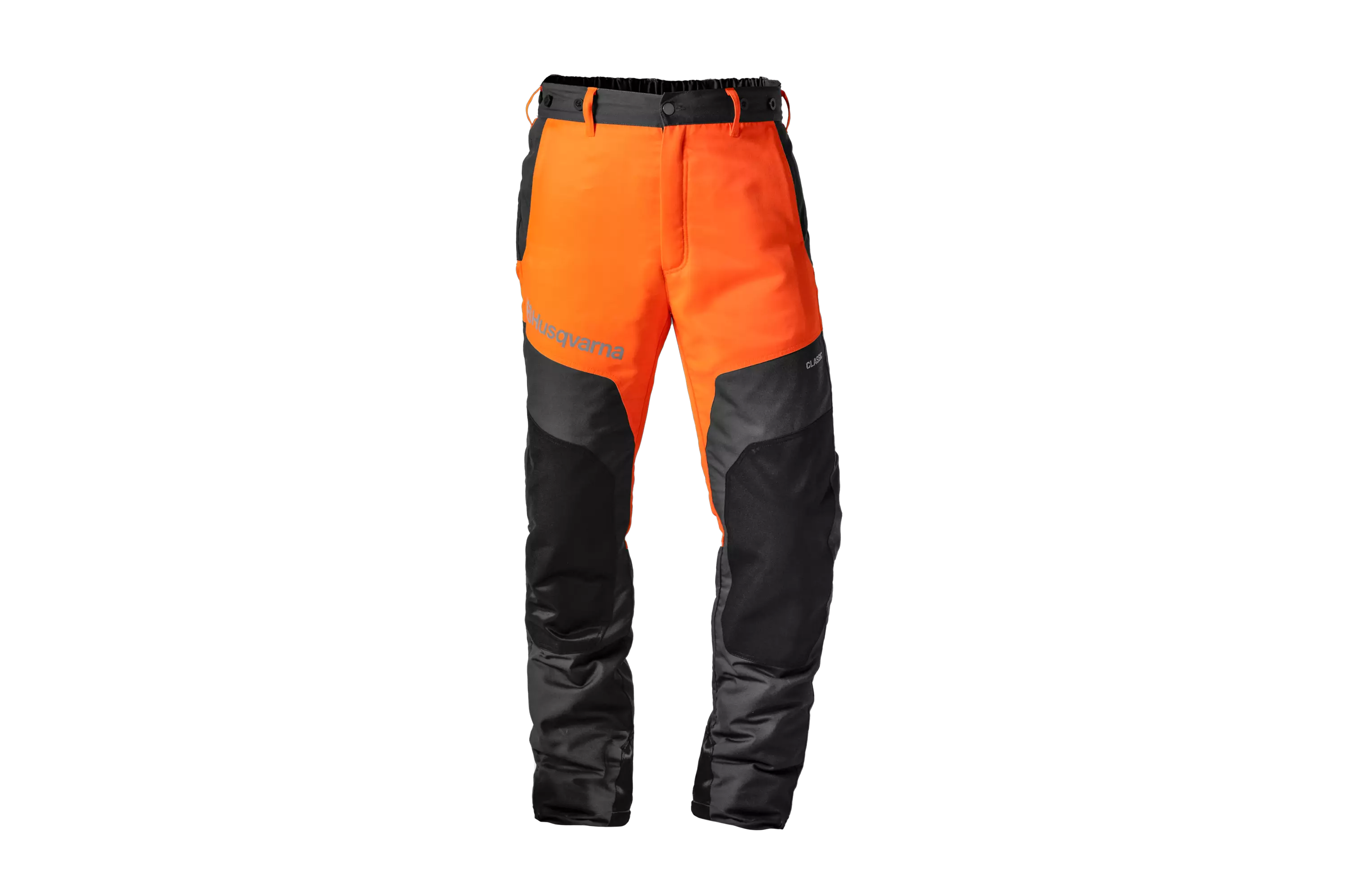 Husqvarnan kestävät ja tehokkaasti suojaavat Classic-moottorisahahousut on suunniteltu metsätöihin. Täysin tiivis viiltosuoja ja viiltosuojan lisävahvistettu alempi suojus lisäävät turvallisuutta ja kestävyyttä. Henkselinapit mahdollistavat nopean kiinnityksen, kun tarvitset lisätukea, ja huomiovärit parantavat näkyvyyttä. Vetoketjulliset tuuletusaukot lahkeiden takana takaavat hengittävyyden, ja vetoketjutaskut helpottavat pikkutavaroiden käsittelyä ja suojaavat niitä sahanpurulta. Standardin EN ISO 11393 luokan 1 (20 m/s) mukainen tuote. Saatavana koot 40–64 sekä normaalipituisena että lyhytlahkeisena.