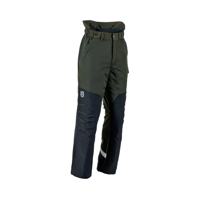 Ulkoiluvaatteelta näyttävät Husqvarna Functional -turvahousut sopivat ihanteellisesti metsänhoitotyöhön. Kovaa käyttöä kestävää Cordura®-materiaalia on käytetty riskialttiilla alueilla. Mukavuutta ja tuottavuutta ajatellen suunnitelluissa housuissa on tuuletusvetoketjut, sivutasku ja mittatasku. Standardin EN ISO 11393 luokan 1 (20 m/s) mukainen tuote. Saatavilla olevat koot 42–62.