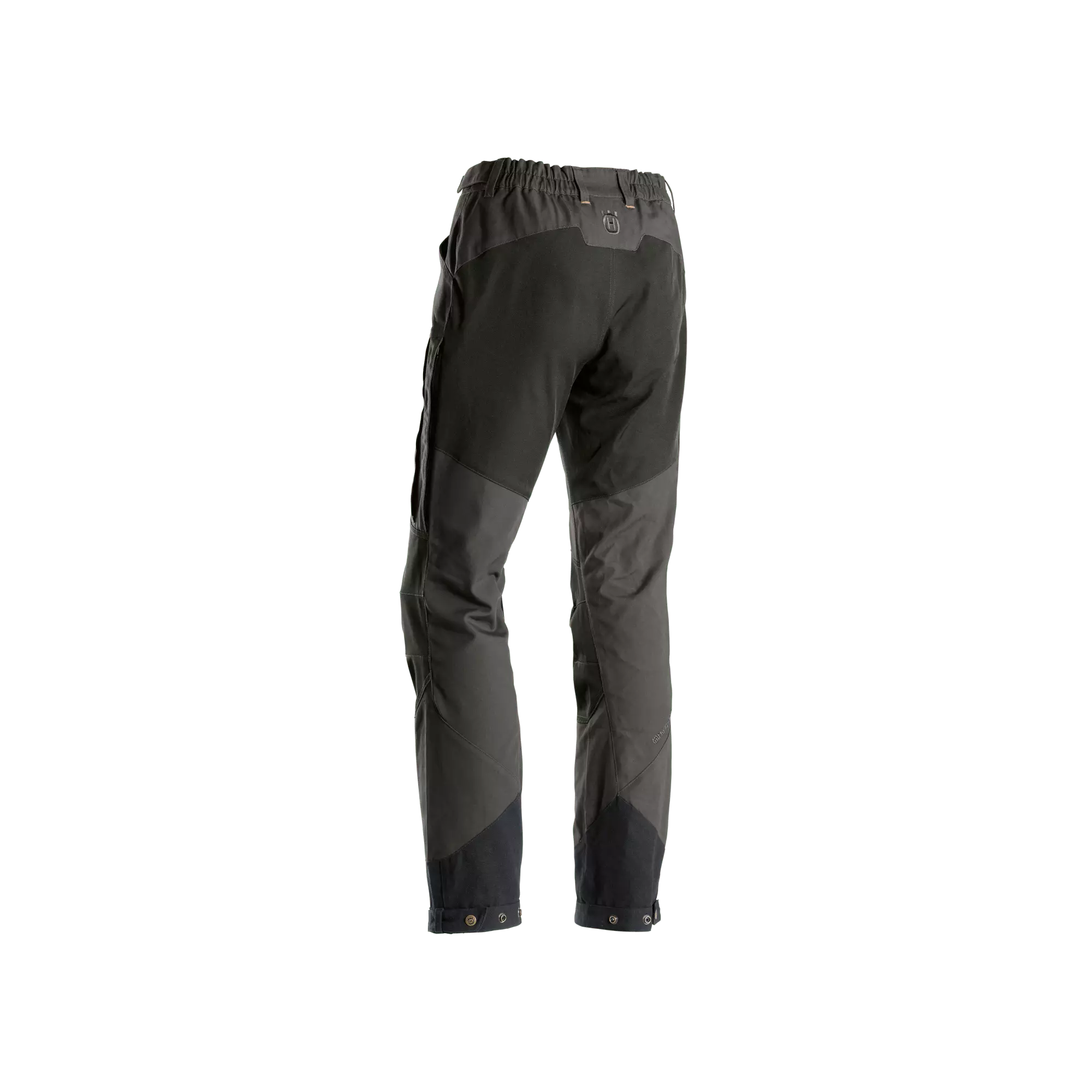 Mukavat ja kestävät housut ulkoilukäyttöön. Materiaalina polvissa ja takana joka suuntaan joustava stretch sekä muotoonommellut polvet. Kulutukselle alttiit kohdat on vahvistettu. Säädettävä vyötärö ja napeilla säädettävä lahkeiden pituus. Kännykkää varten pehmustettu tasku, johon pääsee hyvin käsiksi. Miesten malli, väri hiilenharmaa/metsänvihreä. Koot S-XXL, saatavana myös lyhytlahkeisempi versio.